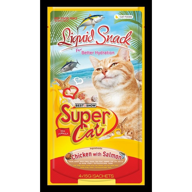 Best In Show Supercat Liquid Snack Chicken w/ Salmon 15gr ( isi 4 sachet )