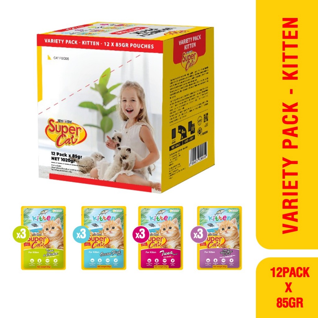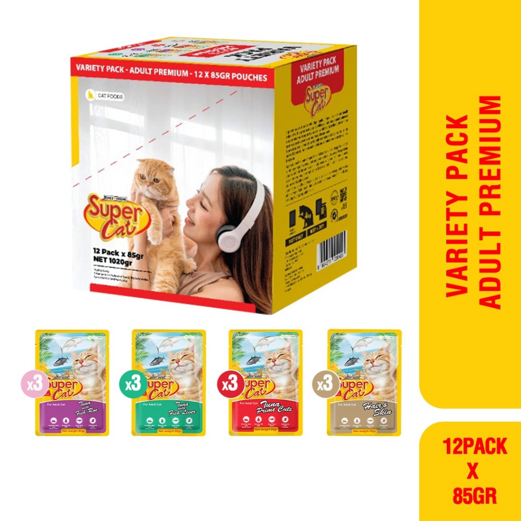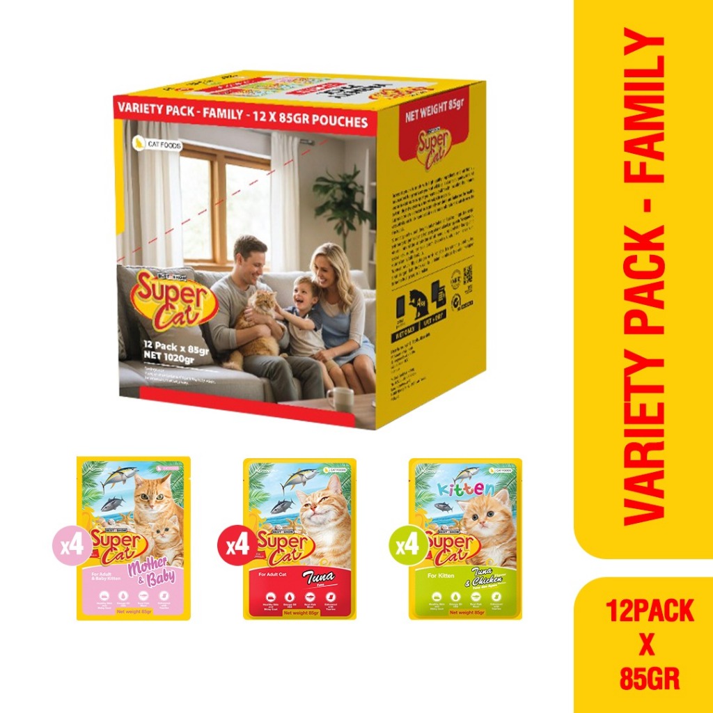 PAKET HEMAT SUPERCAT VARIETY PACK ISI 12PC MIX - Makanan Basah Kucing pouch 85gr