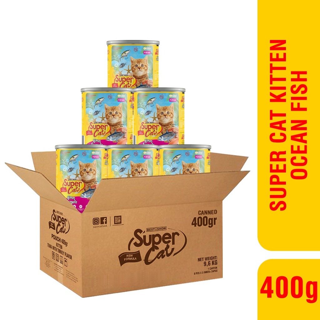 Supercat Kitten Ocean Fish Formula 400gr Paket Hemat 1 Dus ISI 24PC - Makanan Basah Kucing 400GR 24PC